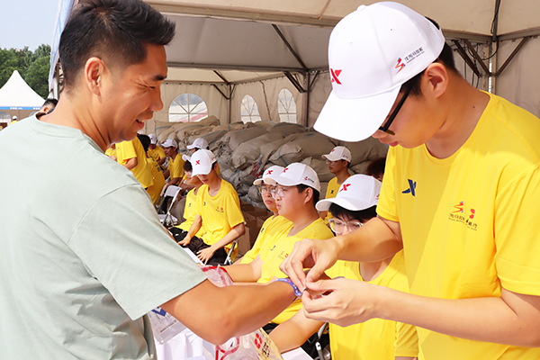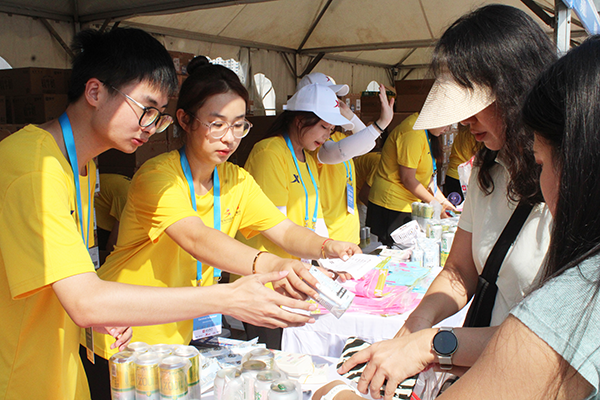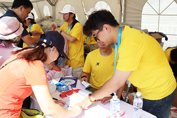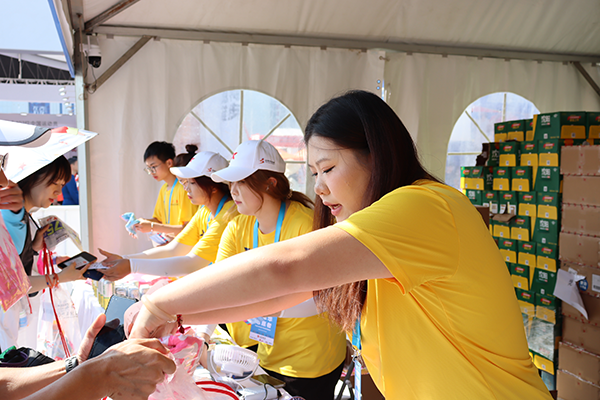 志愿者们全身心投入沈马物资发放工作,面对海量参赛物资,他们分工明确、有条不紊。他们耐心讲解领物流程与注意事项并仔细核对选手信息以确保物资精准发放;芯片检测环节一丝不苟,逐一对芯片进行检测,为比赛精准计时保驾护航;发放比赛物资时,依据选手登记信息,耐心细致且准确无误地将两万套物资发放到每一位选手手中。在全体志愿者的共同努力下,分发工作圆满完成。