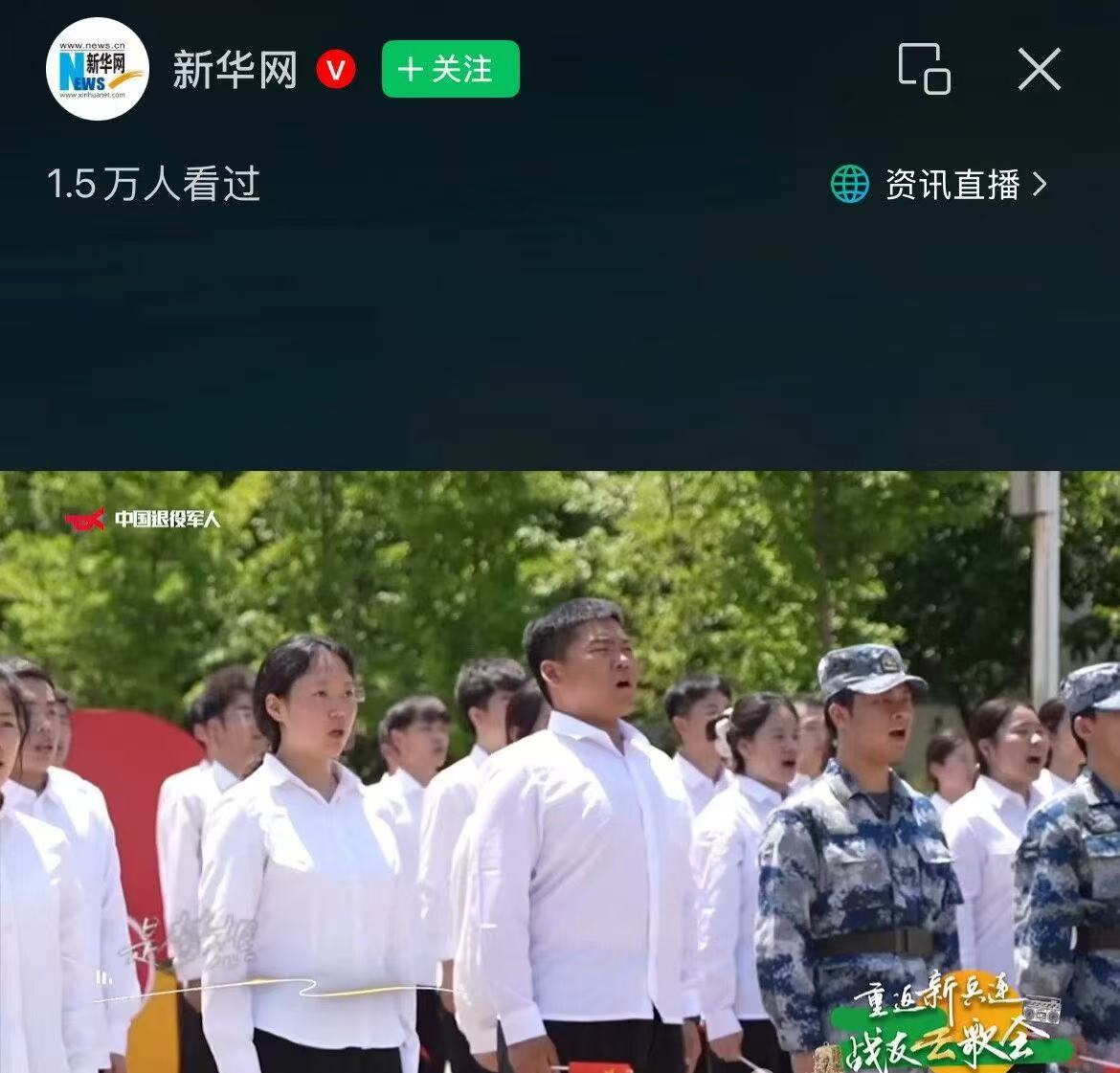 图一为学校参与中国退役军人事务部推出的“重返新兵连 战友云歌会”大型直播活动