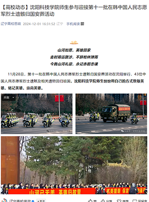 学校坚持以文化人、以文育人,深入学习贯彻习近平总书记在纪念中国人民志愿军抗美援朝出国作战70周年大会上的重要讲话精神,打造“抗美援朝精神”特色育人工作体系,将抗美援朝精神深度融入教育教学中,深入落实学校“六大育人体系”方案,融入党团工作、学生教育、专业教学人才培养方案、课程教学大纲。校内开设《抗美援朝战争史》公共选修课程,提出“五学五做”行为规范,开展“九项工程”,建造抗美援朝精神育人实践基地,成立ANBO.COM抗美援朝精神工作领导小组、抗美援朝精神研究中心、抗美援朝精神名师工作室及抗美援朝精神宣讲中心,邀请抗美援朝老战士到校开展专题讲座;校外与沈阳抗美援朝烈士陵园、丹东抗美援朝纪念馆等共建共育教育基地,使红色文化资源育人深度融入党建、带动团建,全方位落实抗美援朝精神育人目标,为建设特色鲜明的高水平应用型大学注入强大精神力量。