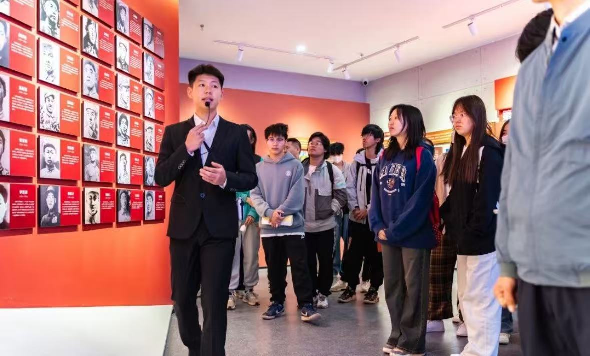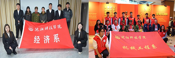 图为师生代表参观丹东抗美援朝纪念馆;学生参观校内抗美援朝精神育人实践基地